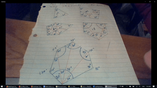 A regular polygon is a polygon whose all sides are equal and also all angles are equal. (a) calculate the size of each exterior angle in the regular octagon. This is 1,260, which when divided by 140 (this being a regular polygon, or a polygon with all equal angles and . Calculate the sum of all the interior angles of the polygon. You just need to find the lcm of 140 &180. But you are right about the pattern . Calculate the measure of interior angles of a polygon. Since the interior angles of a regular polygon are all the same size, the exterior. Each of the interior angles of a regular polygon is 140 o. Sum of all interior angles = (n . The sum of the angles of a polygon with n n number of sides is: To find the interior angle of any polygon, we can divide it into triangles, knowing that all triangles have internal angles that sum up to 180 °. 180(n−2) 180 ( n − 2 ).
